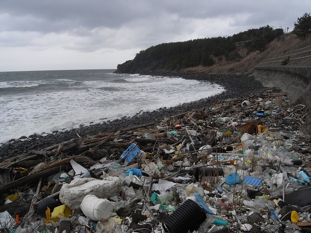 近隣の海岸線では過去に行なわれた漂着ゴミ回収活動のおかげで
