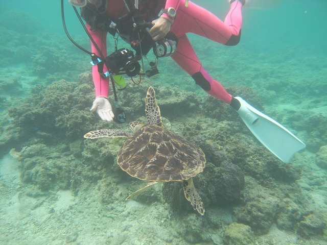 時にはウミガメ、コブシメ(大きなイカ)、マダラトビエイなんて見ごたえのある