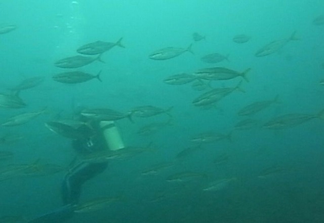 イナダが突っ込んできてダイバーとグルッと囲んで泳ぎ去っていったんです!