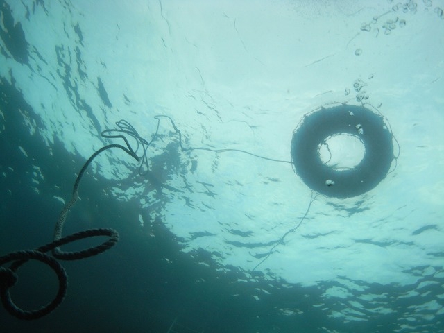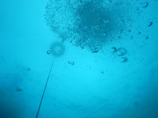 はやる気持ちを抑えてブイのロープをほどきながら水底へ。