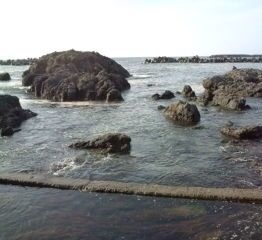 うねりも残って藻がちぎれて岸に打ち上げれている。