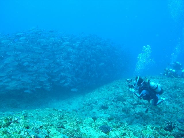 20名超のダイバーがギンガメ玉にアタックした。