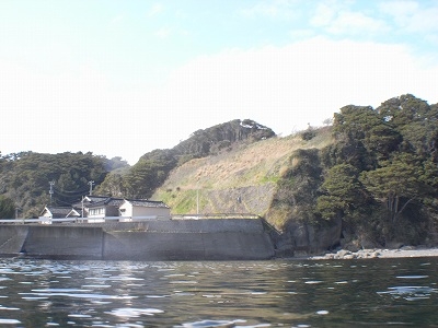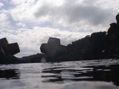 岸を見て左側に体を回したら一つだけポツンと離れた消波ブロックを見つけました。