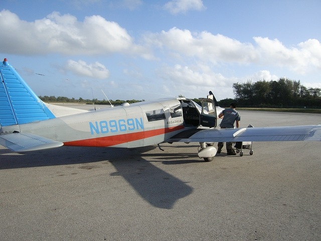 テニアンに飛行機で渡ったお客さんの写真です。