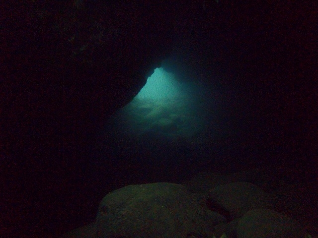 水が澄んでいる場所は、エントリー下の水底から南西方向の13~15mの根の辺り。