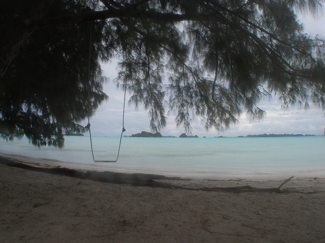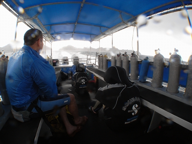みんな後ろを向いて雨粒をしのいでコロール島まで耐えてきた。